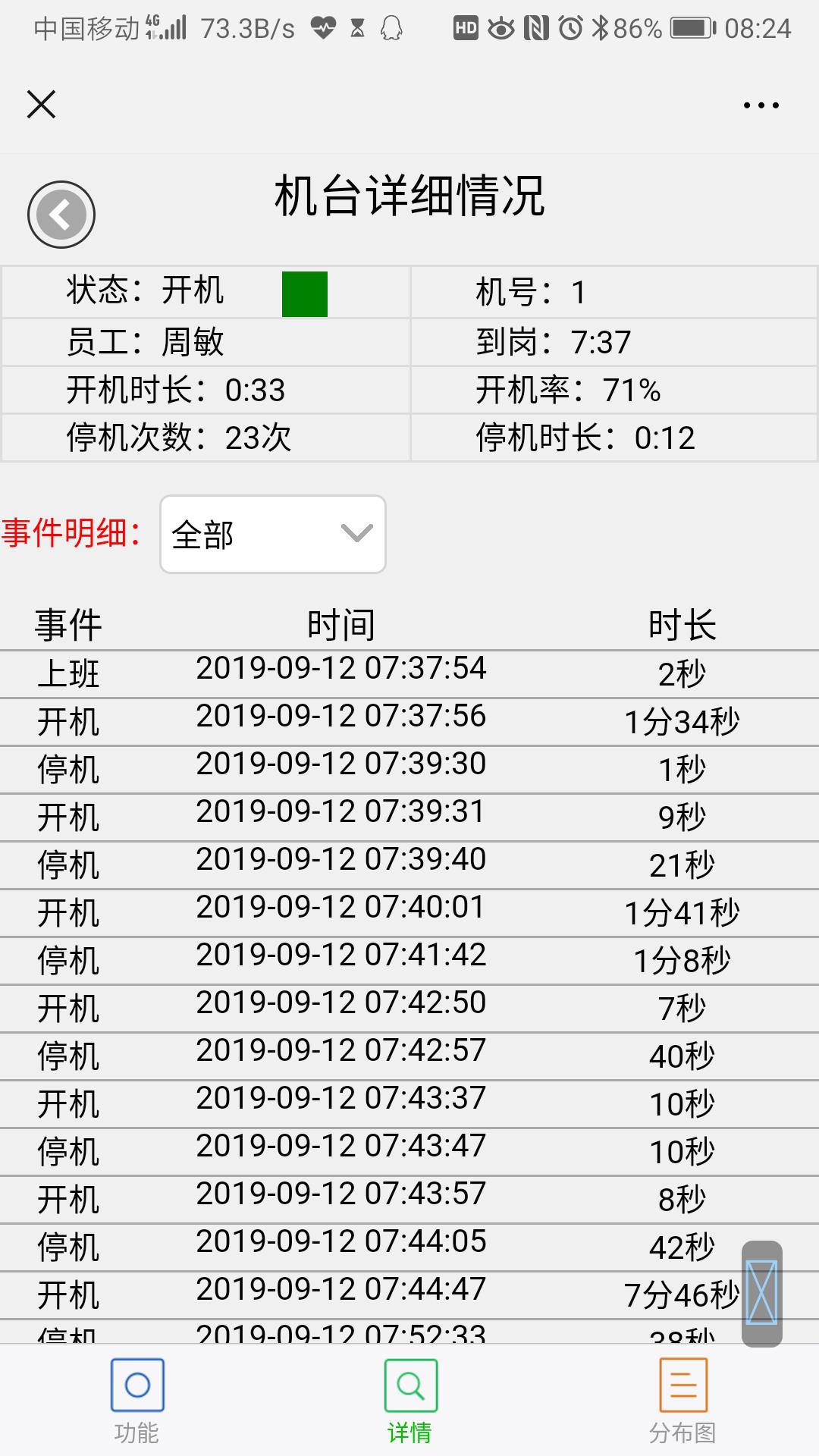可查询机器开停机及用时情况、断头次数以及穿纱和修机用时情况,还包括机器人是否好开、工人干活速度、熟练程度等情况,一目了然。