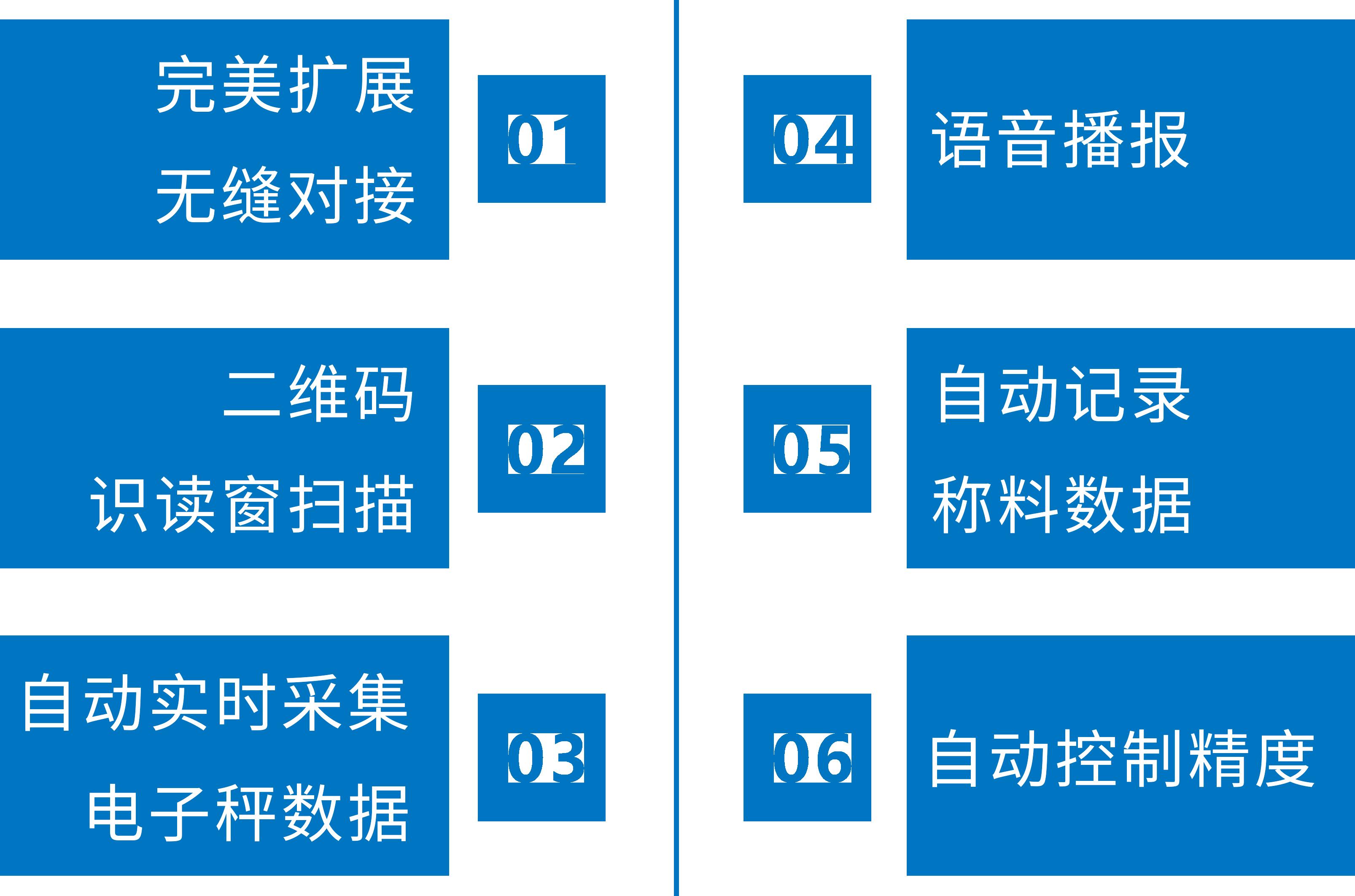 经过全新的换代升级后的自主称料系统,设计更加人性化,使用更加便捷,控制更加精准。