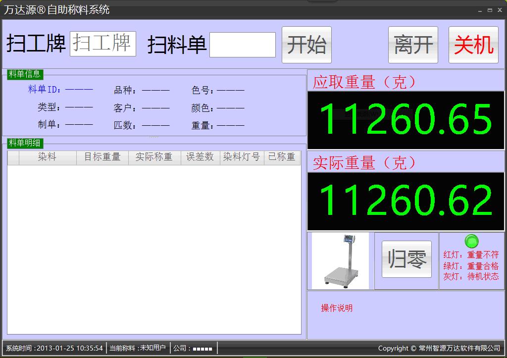 重量合格时,绿色指示灯亮起;重量不符时,红色指示灯亮起;系统待机时,灰色指示灯亮起。